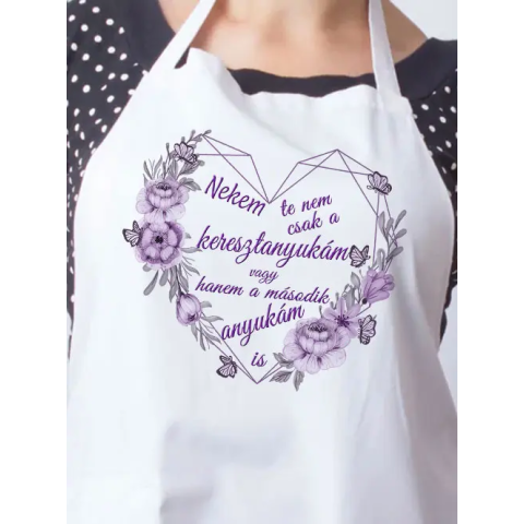 Kötény keresztanyának, második anyuka. „Nekem te nem csak a keresztanyukám vagy, hanem a második anyukám is.” feliratos kötény. Ez a személyes és szívhez szóló ajándék emlékezteti keresztanyádat arra, hogy milyen fontos szerepet tölt be az életedben és mi