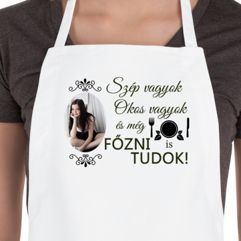 Szép vagyok, okos vagyok és még főzni is tudok! Tökéletes ajándék, a tökéletes lánynak karácsonyra, szülinapra saját fotóval. Alapanyag: 100% poliészter (vászon) Méret: 70 x 79 cm (szél. x mag.)