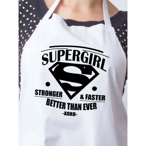 Kötény nyomtatás, Supergirl kötény. Erősebb, gyorsabb, jobb mint, valaha vagyis igazi szuper lány. Lepd meg egy igazi trendi köténnyel barátnődet. Válassz fekete vagy fehér színű kötényeink közül. Egyedi mintával ellátott kötényünk praktikus és stíluso