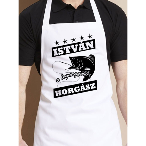 Legnagyobb horgászoknak, névre szóló kötény. Ajándék horgászoknak, névre szóló feliratos kötény a legnagyobb horgásznak. Kifejezetten ajánljuk névnapra, választható keresztnévvel, becenévvel. Fehér vagy fekete színű. Mérete 66x78 cm, anyaga vászon. Egy
