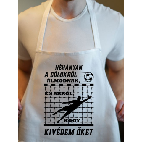 Kötény sportolóknak, ajándék kapusoknak. Feliratos kötény sportolóknak, kapusoknak. Néhányan a gólokról álmodnak, én arról, hogy kivédem őket felirattal. Ajándékozz egy ilyen kötényt focis, kézilabdás családtagodnak, ismerősödnek aki főzni is szeret. Mér