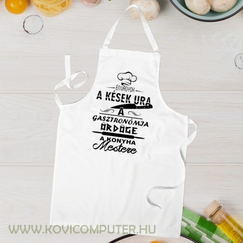 Kötény szakácsoknak, ajándék férfiaknak, kések ura kötény Én vagyok a kések ura, a gasztronómia ördöge, a konyha mestere. feliratos kötény, ami fehér és fekete színben is rendelhető. Tökéletes ajándék minden alkalomra férfiaknak, édesapáknak, testvérekne