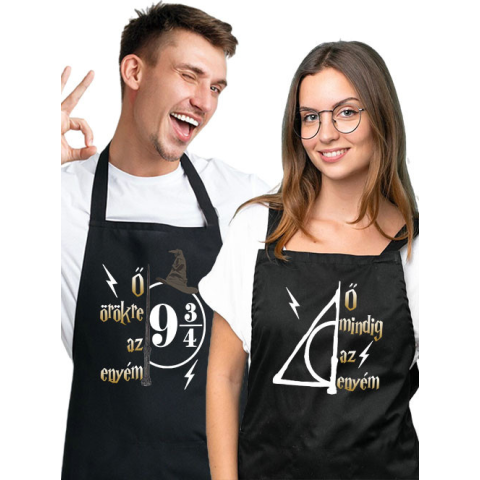 Kötény szerelmeseknek, örökké az enyém. Kötény, amit kimondottan Harry Potter rajongó pároknak találtunk ki. A film egyik legmeghatározóbb mondatával és szinbólumaival. Rendelj magatoknak egy egyedi kötényt amit, közösen, főzés közben tudtok majd viselni