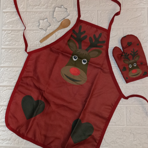 1 kép Kötény szett gyerekeknek karácsonyi mintával - rudolf mintás