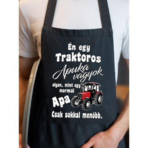 Kötény traktorosnak, traktoros apuka vagyok. Én egy traktoros apuka vagyok, olyan mint egy normál apa csak sokkal menőbb feliratos kötény. Meglepetés férfiaknak, a mezőgazdasági gépek szerelmeseinek, akik a főzni is kiválóan tudnak. Válaszd fekete vagy fe