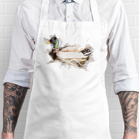 Vadász meglepetés, egyedi vadkacsás kötény. Különleges vízfestékkel festett hatású vadkacsa mintás kötény, ami minden vadász kedvenc kötény lesz. Lepd meg a legjobb vadászt születésnapján egy olyan ajándékkal, aminek garantáltan örülni fog! Fehér színű v