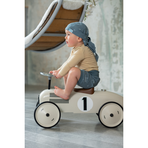 A PeggyBaby vékony, puha pamutanyagból készült hátul megköthető fejkendője, nemcsak kényelmes viselet, hanem a természet viszontagságaitól, a naptól és a széltől is megvédi a kicsik fejét. A tarkóvédő résznek köszönhetően strandra