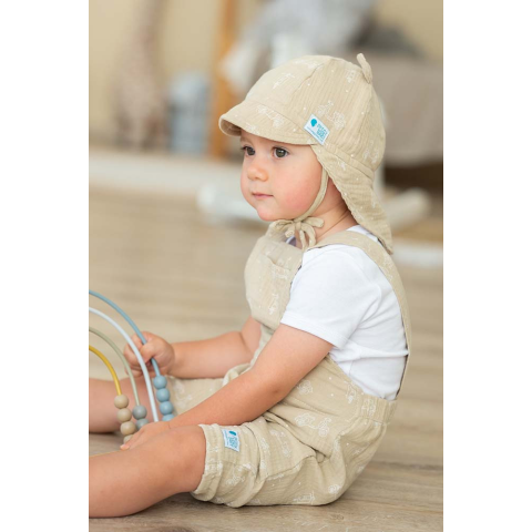 A Peggy Baby kötös nyári sapka tökéletes választás a forró napokra. Muszlin anyagból készült, amely rendkívül puha és légáteresztő, biztosítva a baba kényelmét a legmelegebb időben is. A sapka belső része 100% pamutvászonnal van b