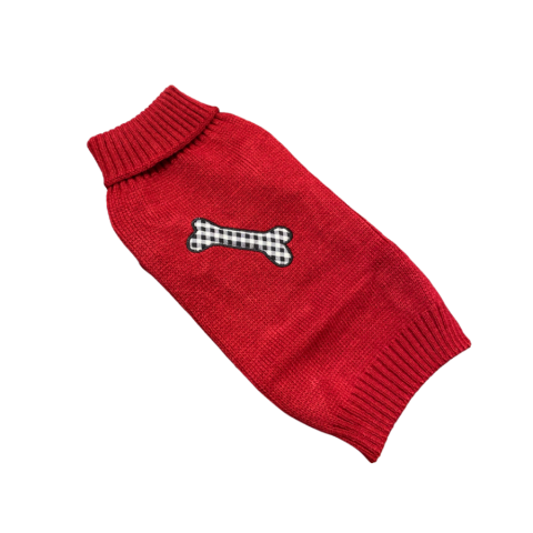 Kötött kutyapulóver csont mintával, piros, S-es kutyaruha 1 kép
