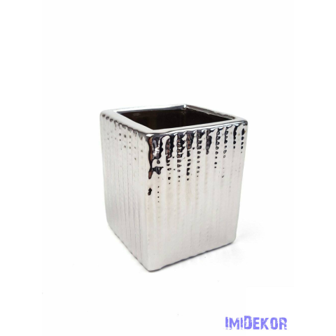 Kötött mintás kocka kerámia kaspó - Metál Ezüst