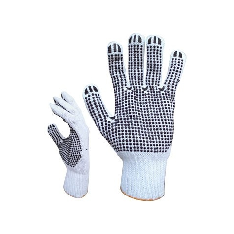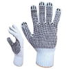 KÖTÖTT PES/PAMUT FEHÉR FÉRFI KESZTYŰ, TENYERÉN KÉKPETTYEK_9 * Négy szálas, 10-es kötésű poliészter/pamut védőkesztyű * Tenyéren csúszás elleni pöttyözés * Gumírozott mandzsetta