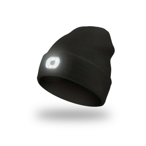 1 kép KÖTÖTT SAPKA ÚJRATÖLTHETŐ LED LÁMPÁVAL FEKETE