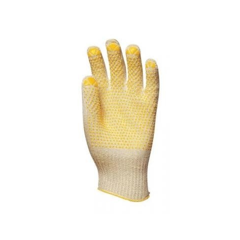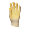 KÖTÖTT VÉKONY FEHÉR ABRALON/NYLON KESZTYŰ, SÁRGA PÖTTYÖS_7 vékony, vágásbiztos, kopásálló, 10-es kötésű Abralon szál tenyerén csúszás elleni pöttyözés, belül komfortos pamutszál 26 cm hosszú, gumírozott mandzsetta SÚLY: 58 g, 77 g és 80 g MÉRET: 7-es,