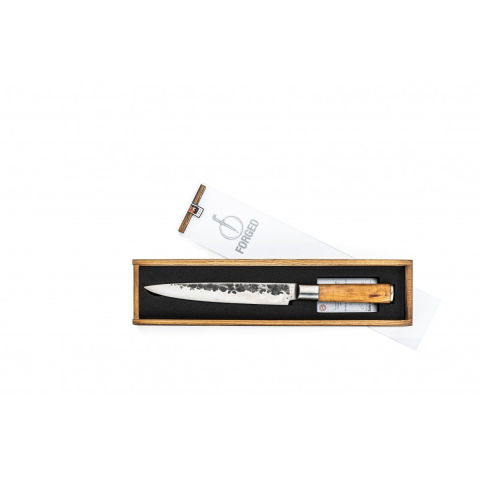 Forged Olive faragókés - 20 cm - Elegancia és precizitás a konyhádban 🔪 A Forged Olive faragókés egy kézzel kovácsolt remekmű, mely a japán 440C acél és az olívafa természetes szépségének tökéletes kombinációja. Ideális választás húsok és halak szele...