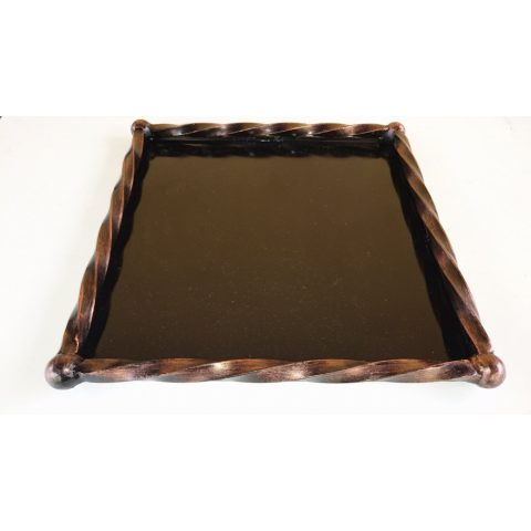 Kovácsoltvas hamutálca - csavart mintákkal - fekete / réz antik Gyártási idő: 2-3 munkanap | Igény esetén más méretekben is legyártjuk. Ehhez vegye fel velünk a kapcsolatot! Szélesség: 600 x 400 mm Magasság: 10 mm Mind a négy oldala zárt! Kovácsoltvas