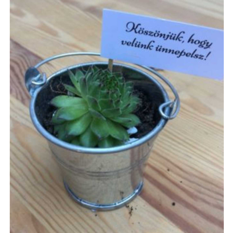 Kövirózsa köszönetajándék vödörben – Természetes és stílusos Ajándékozd meg vendégeidet egy különleges és tartós emlékkel: a kövirózsa köszönetajándék vödörben tökéletes választás esküvői ajándéknak. A szárazságtűr