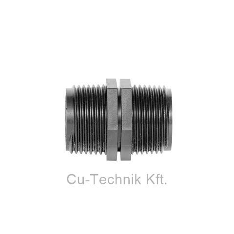 Műanyag közcsavar, amely a 1” belső menet külső menetté alakítására, vagy két 1”-os belső menetes idom összekötésére alkalmazható. Műanyag közcsavar, amely a 1” belső menet külső menetté alakítására, vagy két 1”-os belső menetes idom összekötésére alka