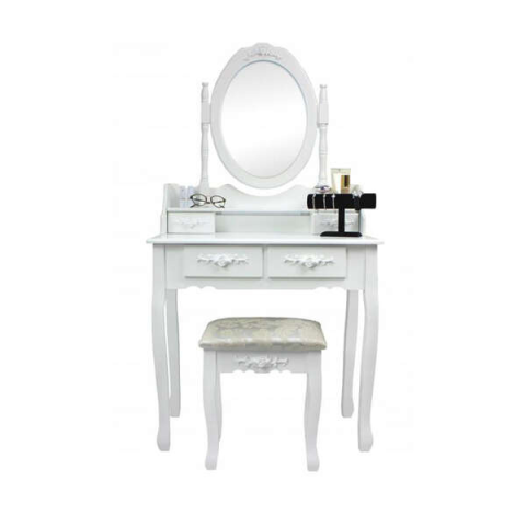 Teljes Kozmetikai fésülködő és sminkasztal dönthető tükörrel és sminkszékkel termékleírás