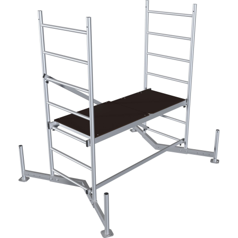 A kiváló minőségű Krause ClimTec alapállvány egy olyan bővíthető alapmodul, amely kb. 3 m-es munkamagasságot kínál. Ugyanakkor kényelmes helyet kínál a munkavégzéshez a kb. 150 cm x 60 cm méretű hasznos állófelületen. A platform magassága lépcsőről lépcsőre (25 cm-enként) állítható, így könnyedén megbirkózik a magasságkülönbségekkel, pl. lépcsőkön. A ClimTec alapállvány emellett ideális állványként tűnik ki a belsőépítészeti munkálatok sor