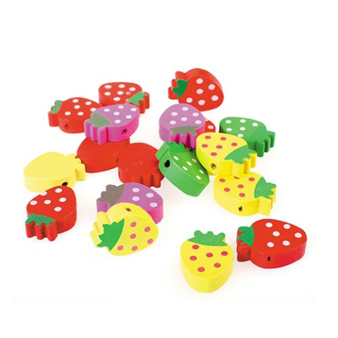 Kreatív CF fa figura eper 25 db/csomag Eper alakú gyöngy fábólnyaklánccá fűzhetőváltozatos szinekben és díszítésselkiszerelés: 25db /csomag