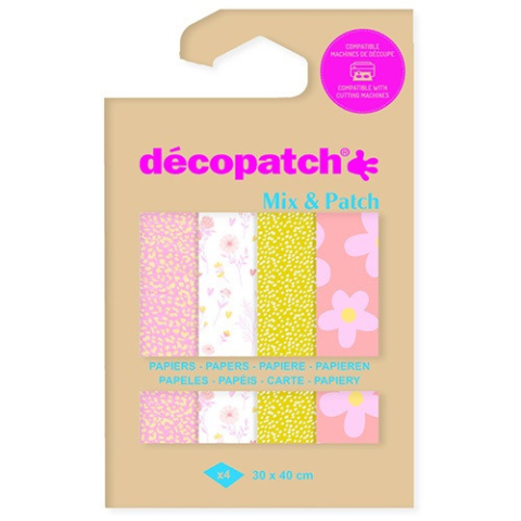 Kreatív decoupage papír Clairefontaine Décopatch 4 mintával ref. DP036C 	Kreatív decoupage papír szett 4 féle, harmonizáló mintával 	Változatos vidám minták és színek 	Méret: 30x40 cm