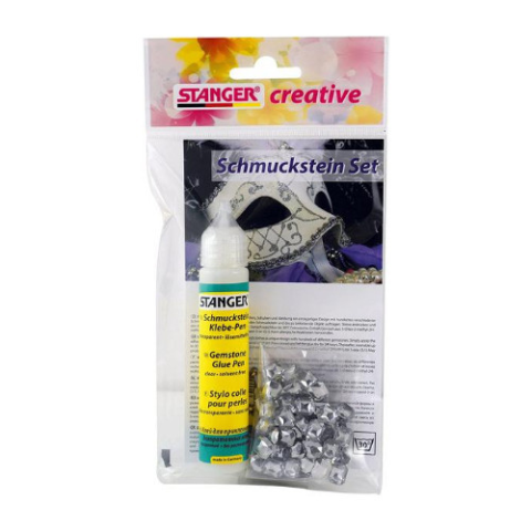 Kreatív Stanger ékkőragasztó klt. ragasztóval ékkő ragasztására használható szett, mely használható papíron, fényképen, kartonon, fán és különböző textílekena készletben található ragasztó oldószermentes száradási idő: 4 óraaz első mosás legalább 24 ór