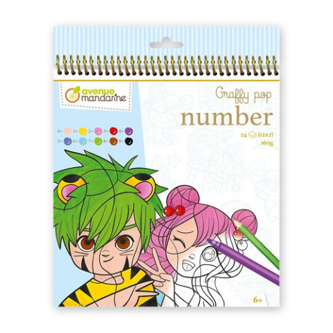 Kreatív számos kifestő füzet Avenue Mandarine Graffy pop Manga Számos kreatív színező 20x25,5 cm Spirálos 24 mintával (12x2 lap) Minden szám egy színhez rendelt Ideális finommotorika képességfejlesztéshez és a színharmónia tudatos elsajátításáho