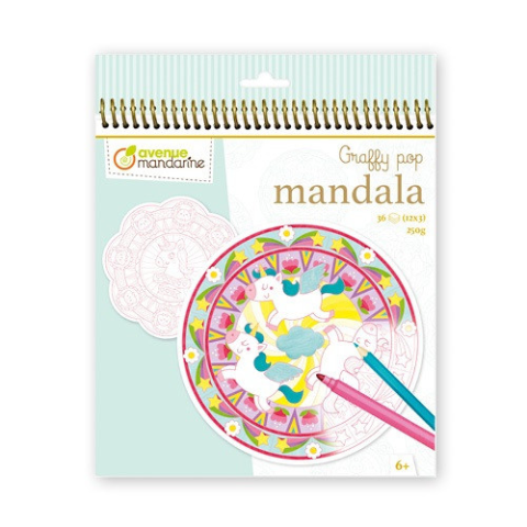 Kreatív színezőfüzet Avenue Mandarine Graffy pop Mandala Varázslat Kreatív színezőfüzet Alapanyag: 250g/m2 rajzpapírból készült Környezetbarát, PEFC tanúsítvánnyal rendelkezik 36 mintával (12x3 lap) spirálos kivitel Minden technika számára alkal