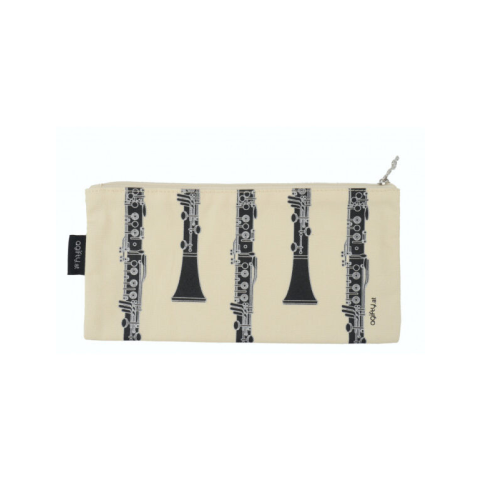 Krém színű, fekete és ezüst klarinét mintás tolltartó