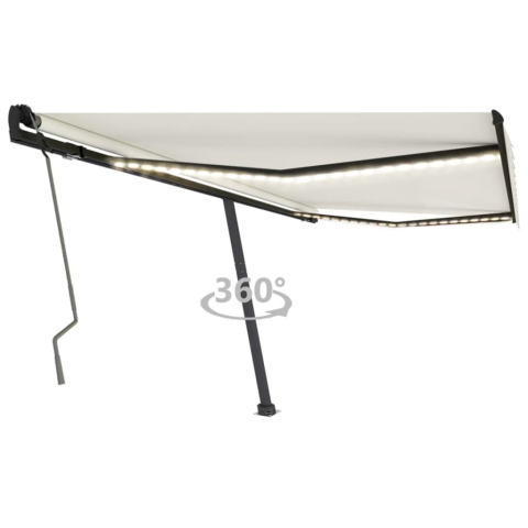 Krémszínű kézzel kihúzható LED-es napellenző 400 x 350 cm kerti bútor termékleírás