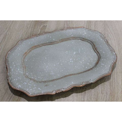 Krémszínű ovális tálca patinával 38cm konyhai eszköz 1 kép