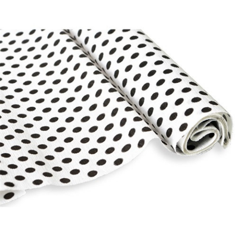Krepp-papír Jolly 50x200 cm 28g/m2 fehér fekete pöttyökkel minőségi krepp papír, fehér, fekete pöttyökkelméret: 50 x 200 cmsúlya 28 gszéles körben használják rendezők, virágkötők, alkotó művészeka papír tekercsbe van csomagolvanézzen körül webáruházunk