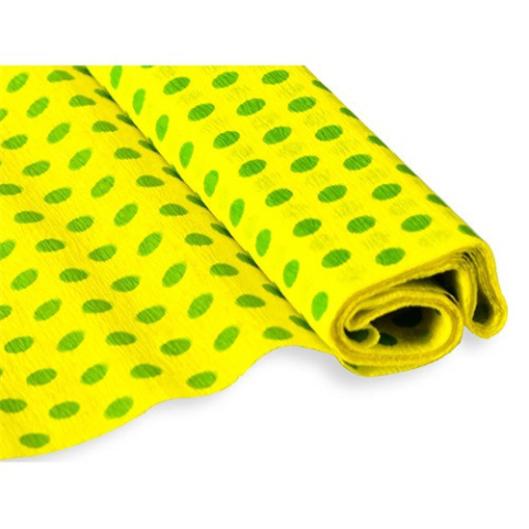 Krepp-papír Jolly 50x200 cm 28g/m2 világos sárga zöld pöttyökkel méret: 50 x 200 cmméret: 50 x 200 cmsúlya 28 gszéles körben használják rendezők, virágkötők, alkotó művészeka papír tekercsbe van csomagolvanézzen körül webáruházunkban, többféle mintás k