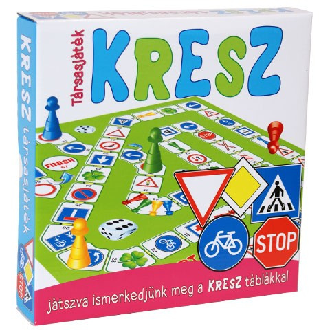 Kresz társasjáték - Játszva ismerkedjünk meg a KRESZ táblákkal! Termékjellemzők: Ajánlott életkor: 4 éves kortól Játékosok száma: 2–4 fő Fejlesztési területek: megfigyelés, emlékezet, szociális készségek, környezeti tudatosság Tematika: közlekedési táblá