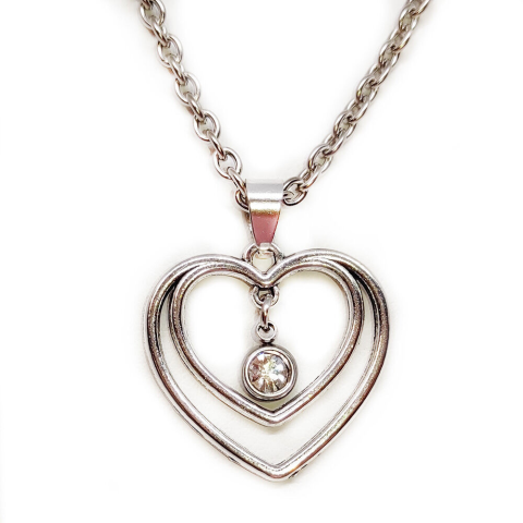 1 kép Kristály köves dupla szív medál lánccal, ezüst színű