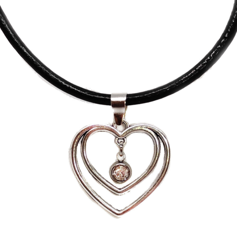 1 kép Kristály köves dupla szív medál műbőr lánccal