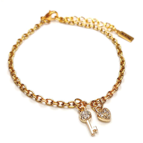 1 kép Kristály kulcs és lakat charmos arany színű karkötő