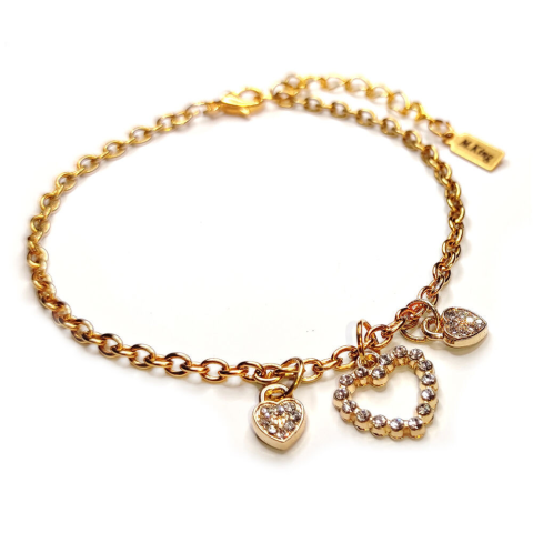 1 kép Kristály szív és lakat charmos arany színű karkötő