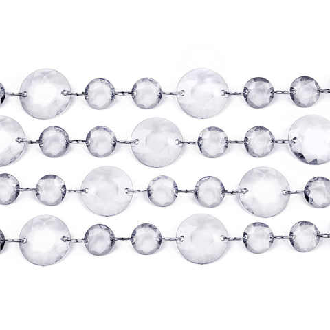 Színtelen kristályfüzér, hossza 1 méter. A kristálygolyók átmérője: kicsi 18 mm, nagy 30 mm.