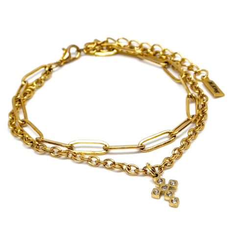 1 kép Kristályos kereszt díszes rozsdamentes acél dupla karkötő, arany színű