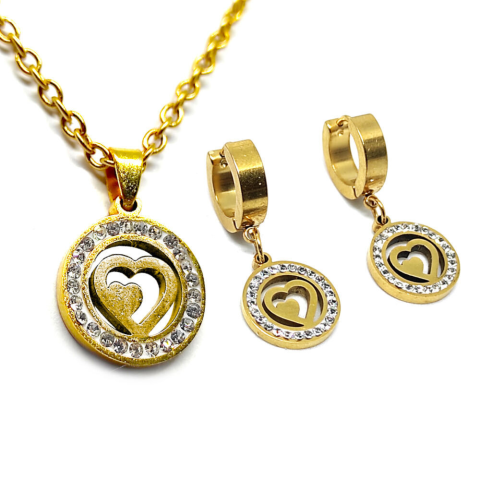 1 kép Kristályos nemesacél szív medál arany színű lánccal + fülbevaló szett
