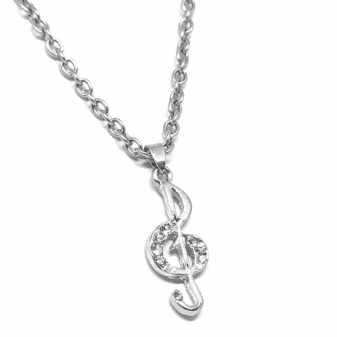 1 kép Kristályos Violinkulcs gyerek nyaklánc medállal, ezüst színű