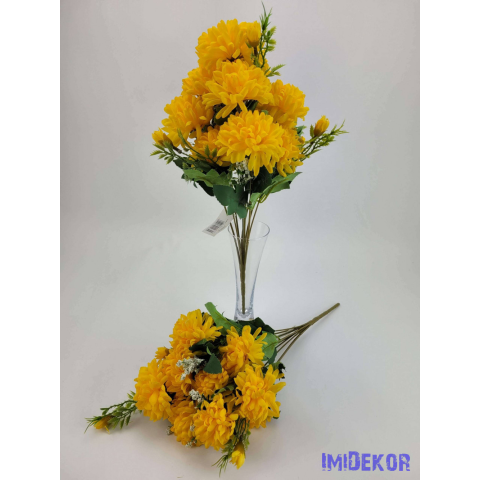 1 kép Krizantém 10v selyem csokor 42cm - Napsárga