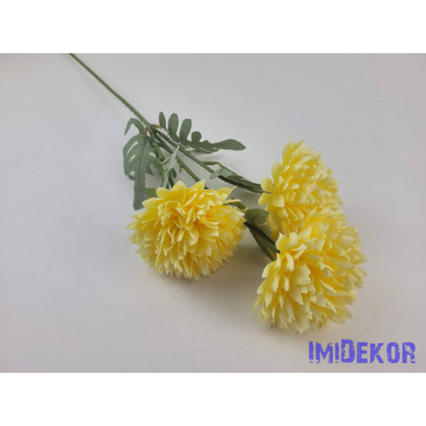 Krizantém 3 fejes selyem ág 63cm - Vaj dekorációs kellék 1 kép
