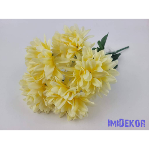 1 kép Krizantém 5 ágú selyem csokor 38cm - Halvány Sárga
