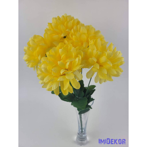 Krizantém 5 ágú selyemvirág csokor 38cm - Sárga