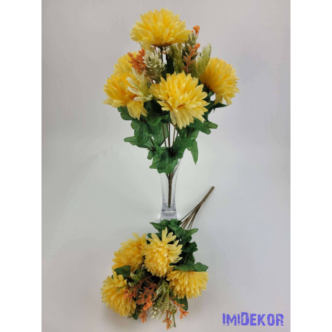 1 kép Krizantém 6v selyem csokor 38cm - Vajsárga