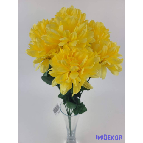 Krizantém 7 ágú selyemvirág csokor 40cm - Sárga