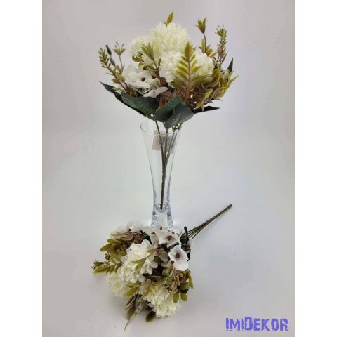 1 kép Krizantém hortenzia 5v selyem csokor 28cm - Krém