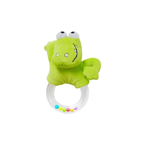 Vidám krokodilos csörgő, zörgő hangokkal! A krokodilos karika csörgő bébijáték egy puha plüssből készült bébijáték, amit a baba kedvére rázogathat. A plüssállat egy karikához van erősítve, ami színes golyókkal van töltve, és rázás hatására csörgő hangot ad ki magából. A krokodilos karika csörgő fejleszti a baba érzékszerveit, és segít a karok mozgásának elsajátításában. Mérete 14 cm.